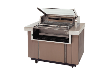スタイリッシュな見た目と高性能を実現した上引式フード。立ち上がる煙が、料理をおいしく演出します。