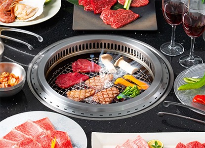食材を乾燥させず、やわらかく、ジューシーに焼ける「セラミック炭」、「熔岩セラミックス」、「熱板」、「炭火」の4種類の熱源からお好みでお選びいただけます。